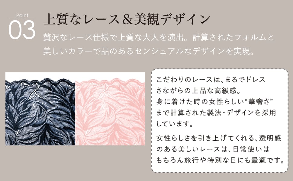 On de miu Beauty shorts モナコクォーツ(ピンク) 子宮を温めからだを巡らせるセンシュアルで開放的な大人のための総レースショーツ 多くの女性が悩む冷えと巡りに関する悩みを解決したいという想いから誕生しました。クロッチ部分に入れた自然由来の蓄熱素材が子宮まわりをあたためる、まるで“穿くよもぎ蒸し”のようなショーツです。そけい部を締め付けない独自設計により、おうち時間も快適におくつろぎいただけます。 日本製 本体レース:ナイロン、ポリウレタン クロッチ等:肌側オーガニックコットン、中綿ポリエステル ▷カラー ・シネマチックグレージュ ▷サイズ Mサイズ 87~95cm Lサイズ 92~100cm LLサイズ 97~105cm ※ご注意ください サイズに迷われた場合はワンサイズ大きめをお勧めいたします(ヒップサイズを目安にお選び下さい)